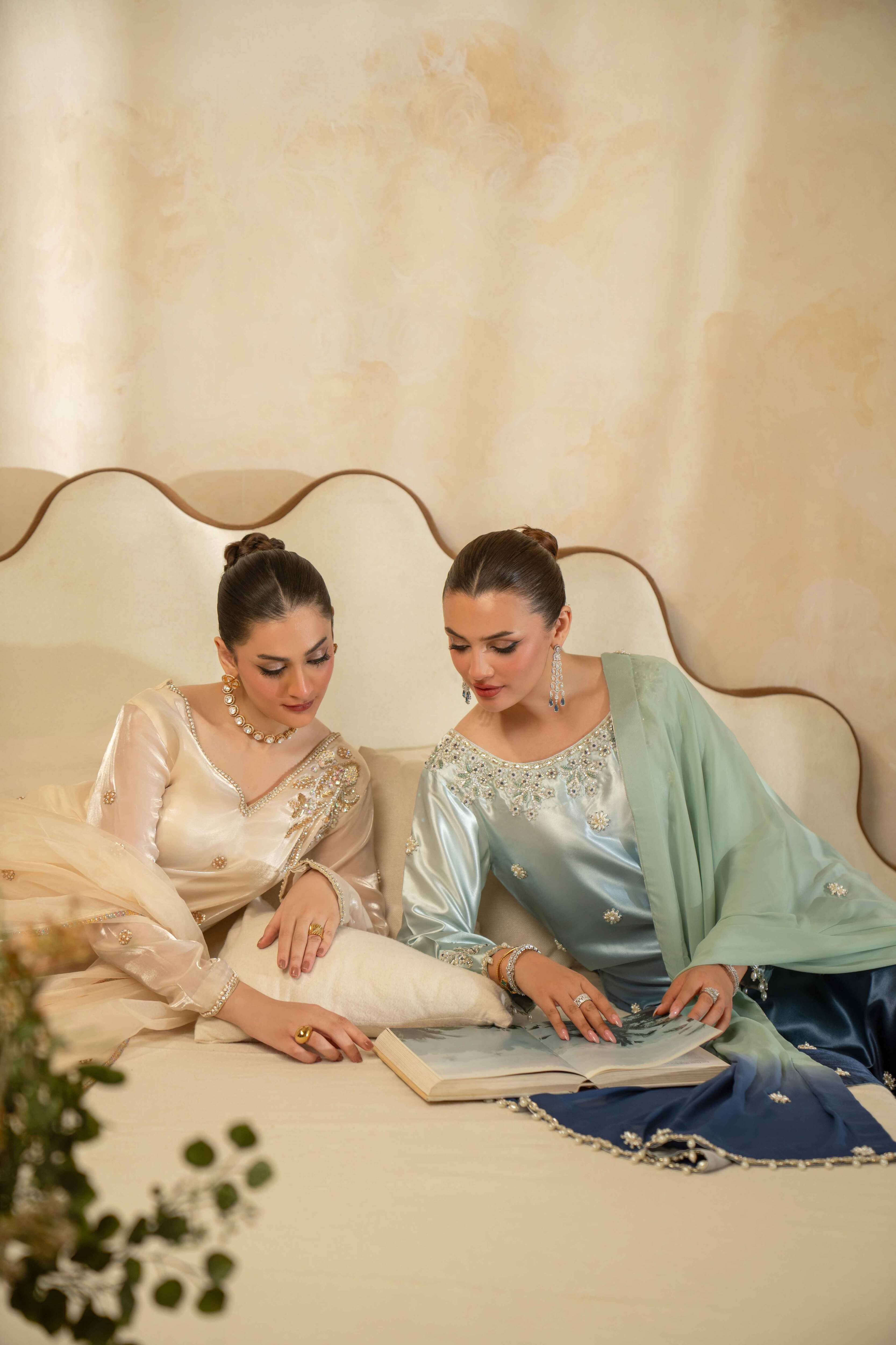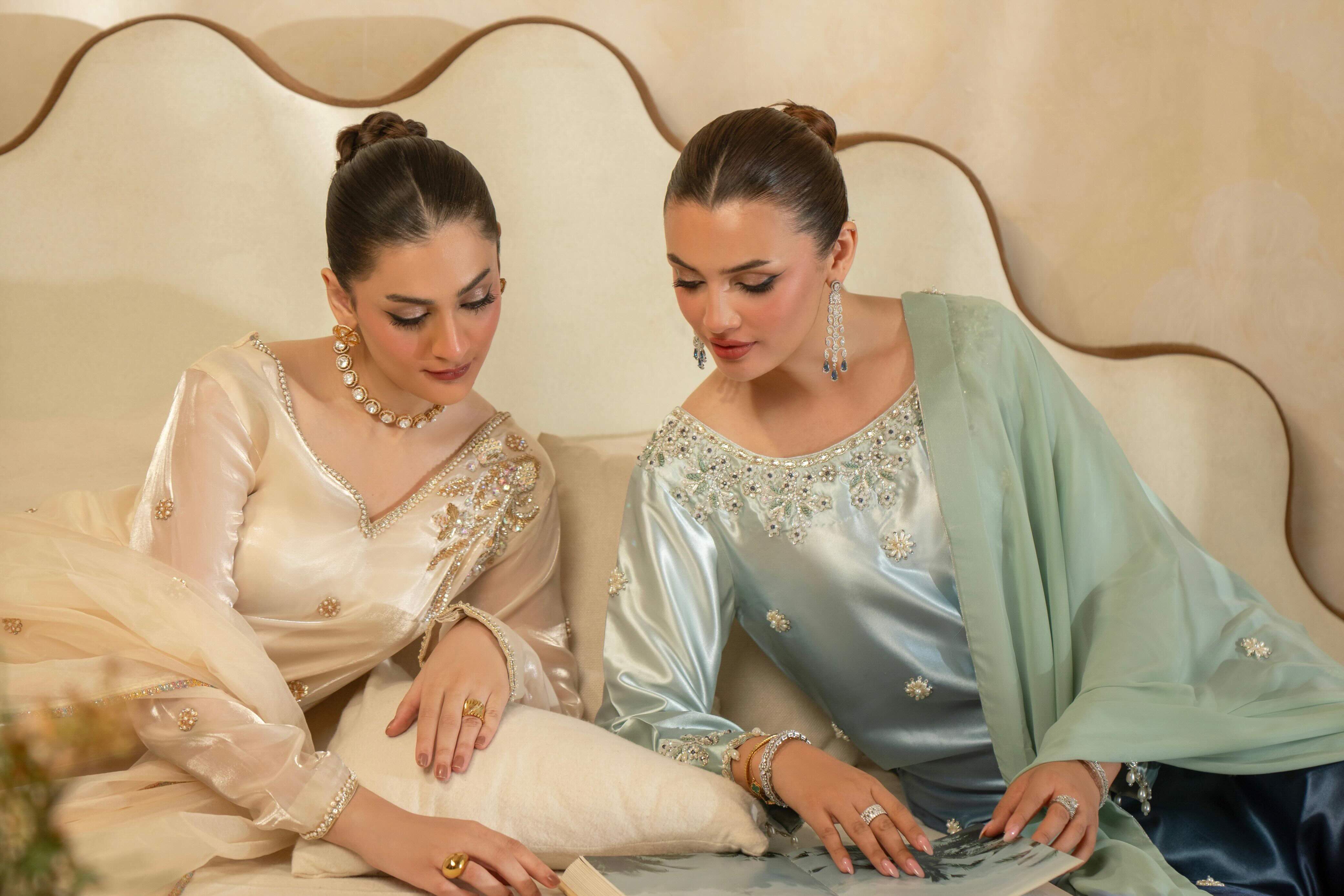At Zeenat Atelier, handwork lies at the heart of every creation. From the first cut to the final stitch, from embroidery to embellishments, each step is entrusted to skilled artisans who devote hours of focus and care to every detail.