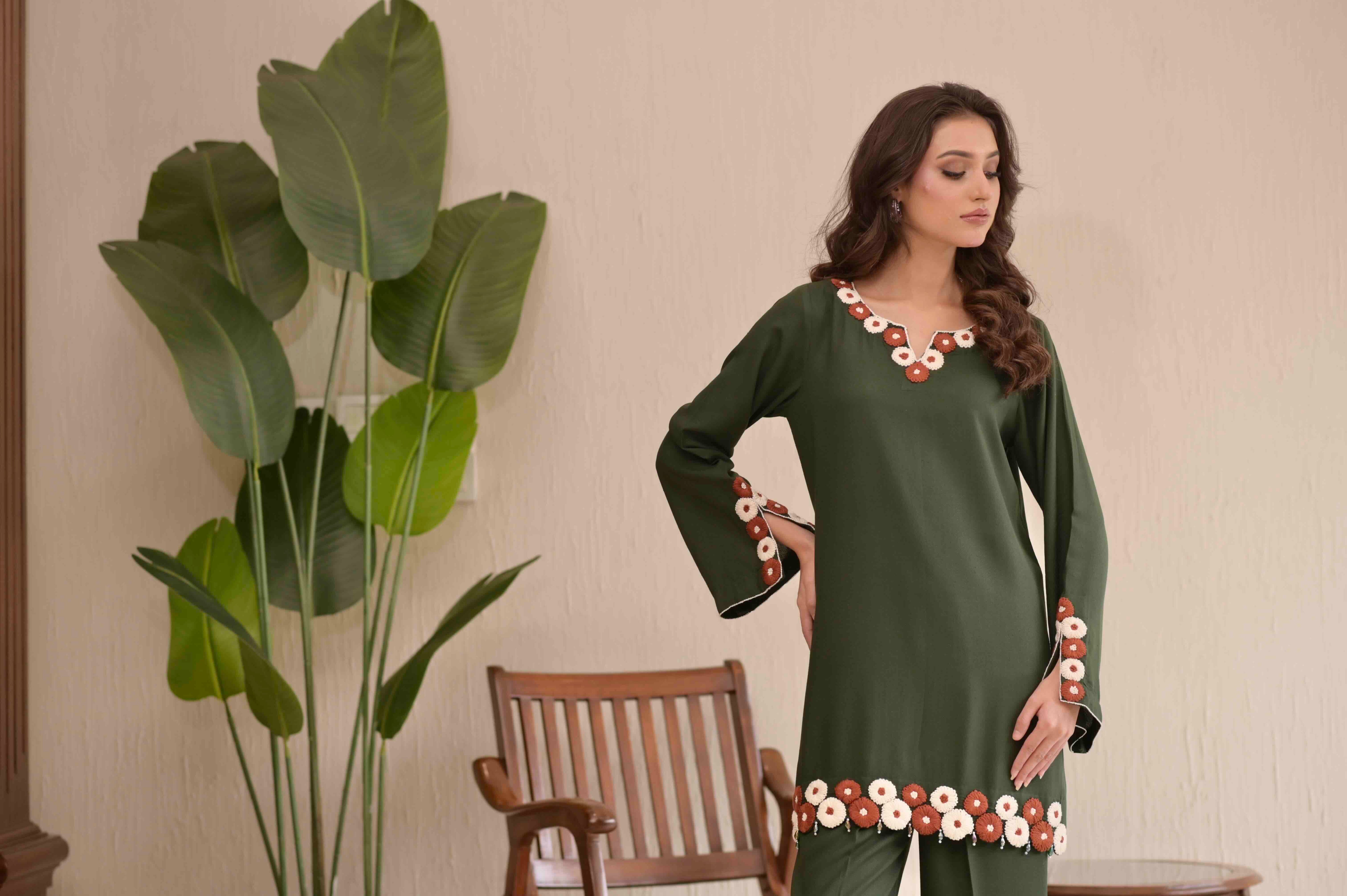 Bottle Green Hand-Embroidered 2-Pc Karandi Set